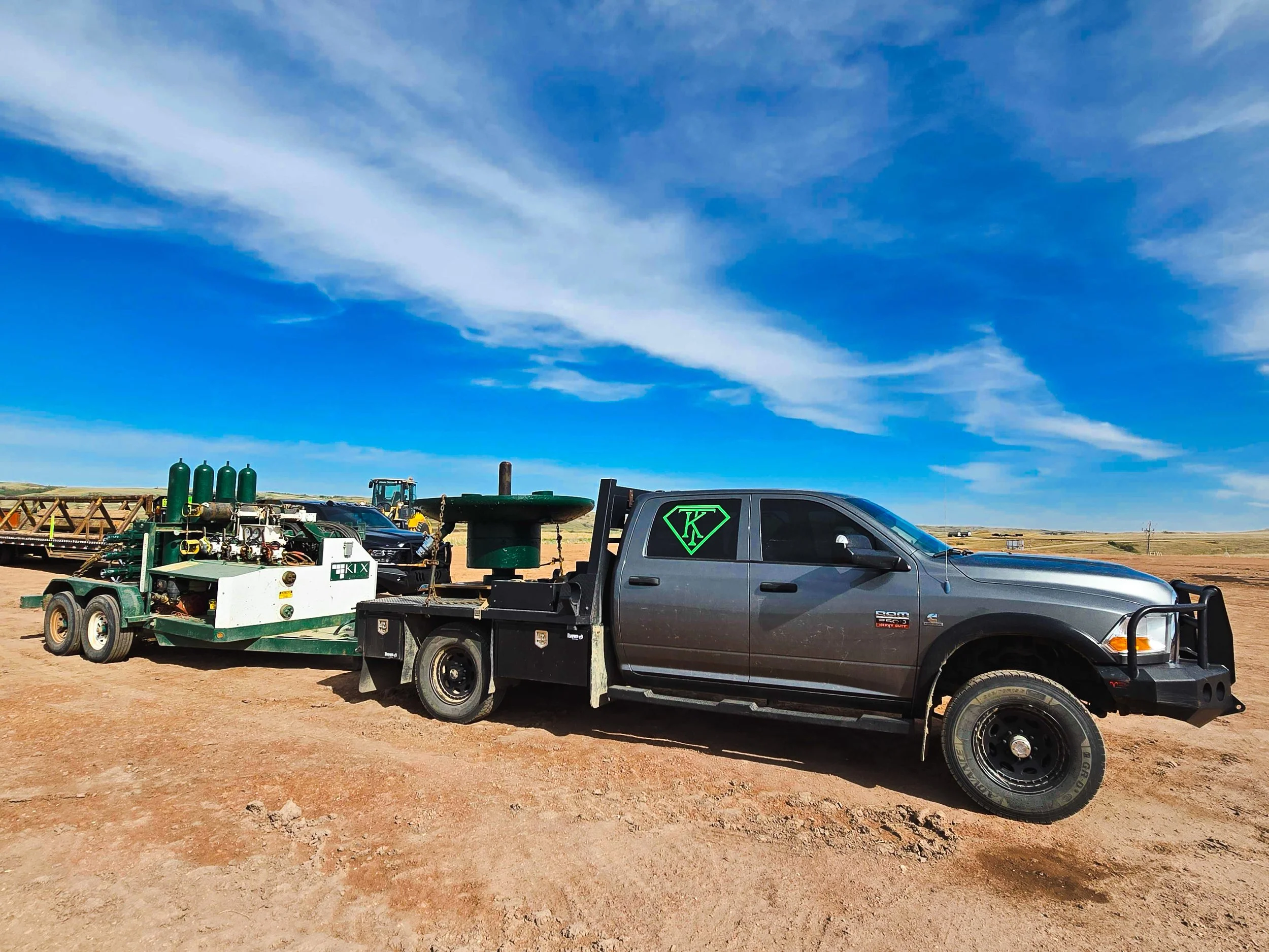 We run a versatile fleet built for the oilfield—1-ton dually hotshot trucks with 40' gooseneck trailers, supported by slick trucks and winch trucks for heavier or more specialized moves. Whatever the haul, we have the equipment to get it done right.